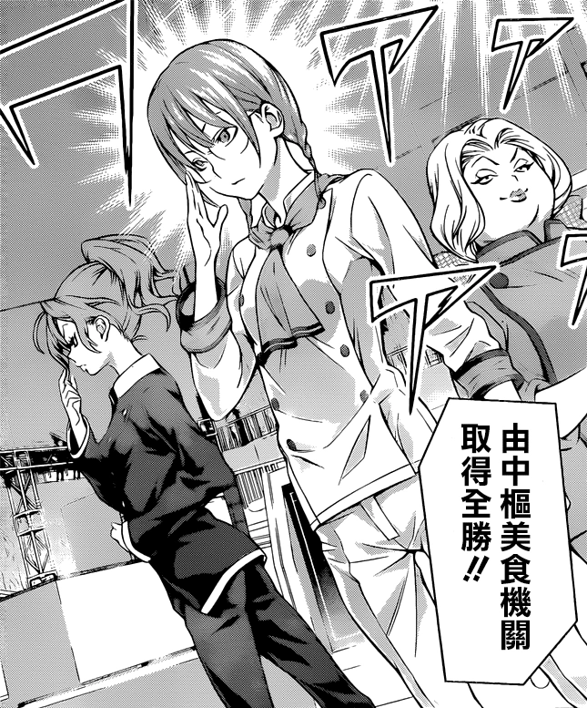 <figcaption> </figcaption></figure>Tengo algunas cosas que especular este capítulo, principalmente sobre la incursión por parte de los autores de Kurokiba y su Shokugeki, usualmente cuando un nuevo antagonista aparece se toma a un personaje X de cierta relevancia en la historia para que sirva de carne de cañón, un sacrificio para mostrar lo temible que son los nuevos antagonistas y añadir acción a la trama. Esa sería una jugada realmente peligrosa si es usada por los autores, siendo Kurokiba un personaje primero, tan popular y segundo tan fuerte, estando a la par de Sōma en habilidades.