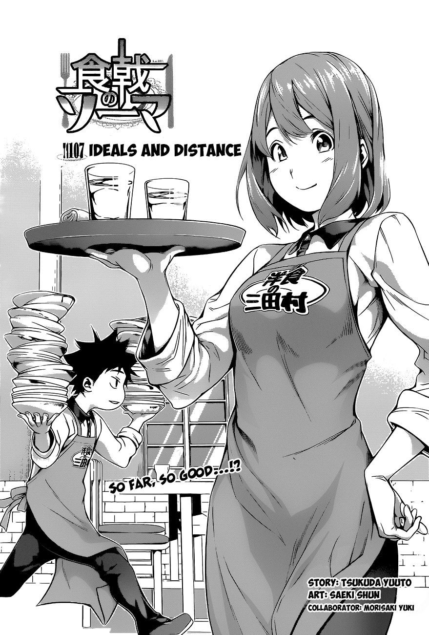 Ideals and Distance is the 107th chapter of Shokugeki no Soma. This chapter continues the first stage of the Stagiaire Arc.