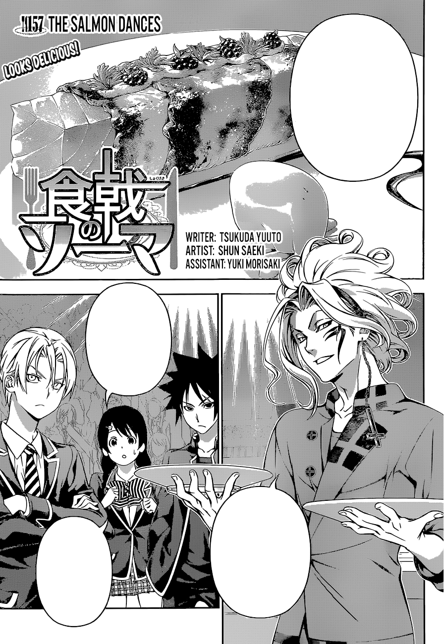 The Salmon Dances is the 157th chapter of Shokugeki no Soma. This chapter continues the Cutting-Edge Cooking RS Vs. Central Shokugeki.