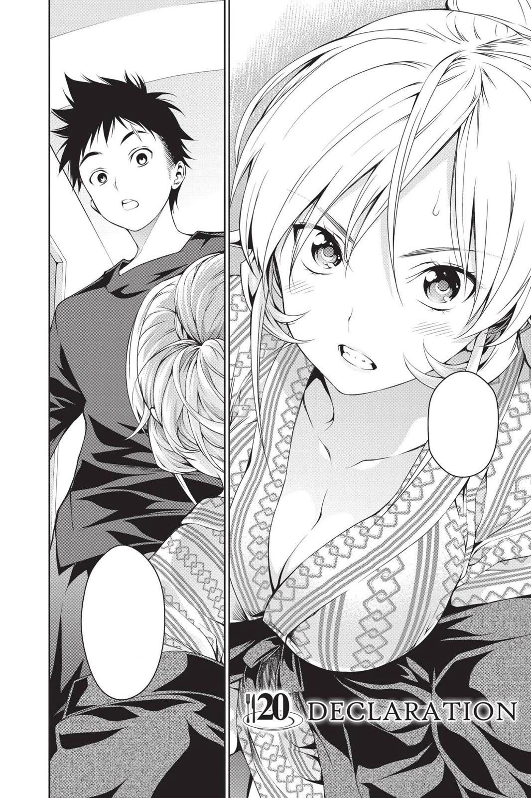 At that moment, Hisako Arato arrives after just having finished the Dinner Assignment. She is surprised to see Sōma, who tells her he pushed Erina down. This leads to a misunderstanding and Sōma leaving the scene. Erina then tells Hisako she doesn't want to play card games anymore, not wanting to compare herself with Sōma, who mentioned earlier he was going to play some games after finishing his bath.