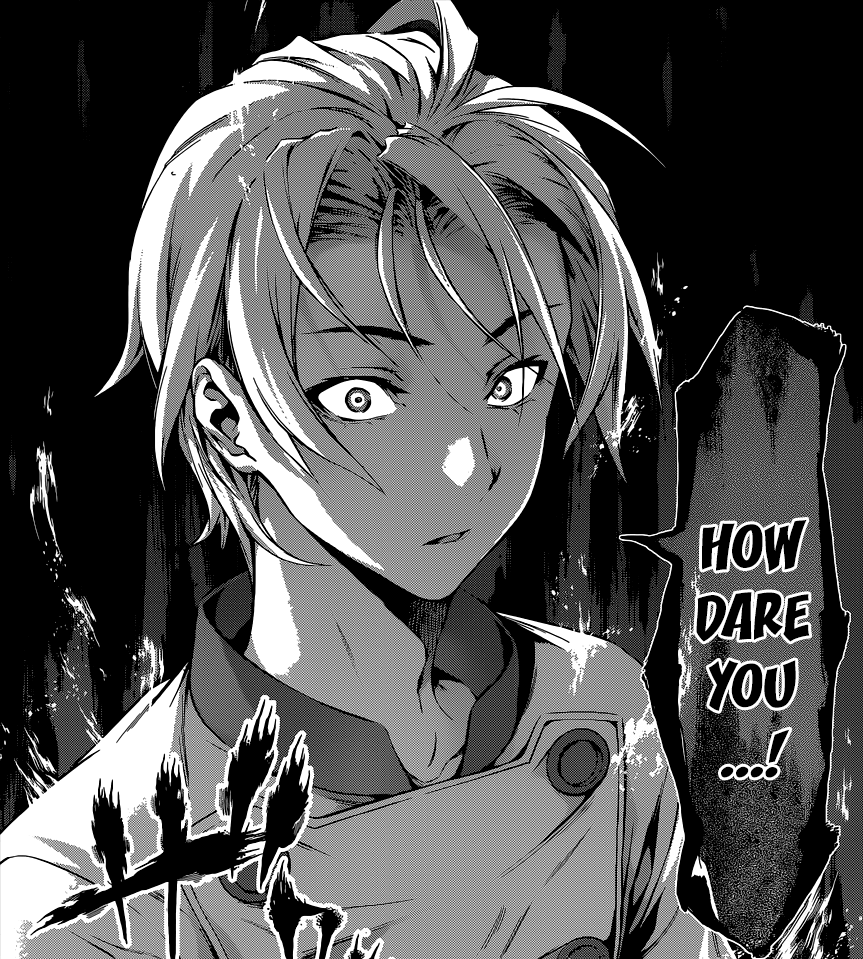 Senzaemon then notes his ability to maneuver the aroma of his dishes and instinctively heighten the appetites of the people. Another judge, also compares Akira's potential to Erina Nakiri's God's Tongue, noting his potential to be close to that of the latter. The judges then come up with a conclusion.