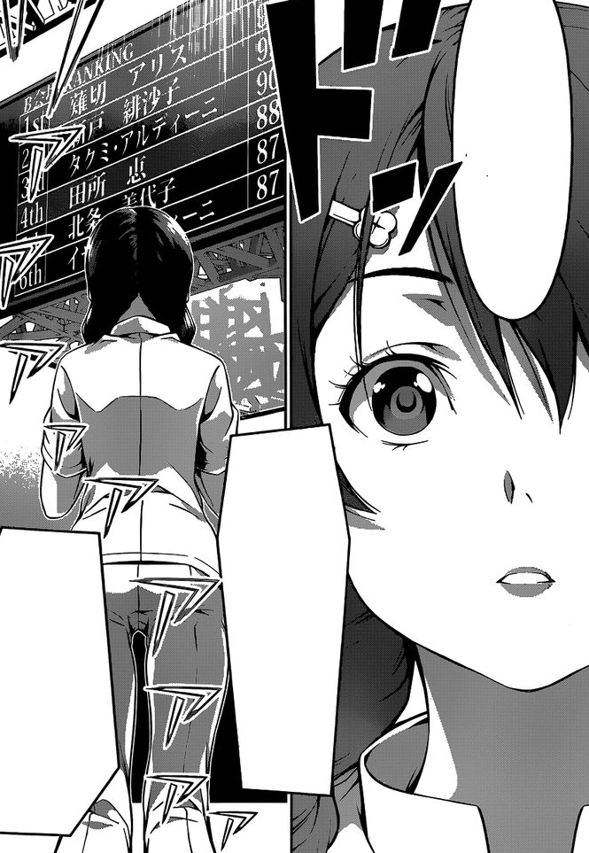 A few days after, Megumi joined the rest of the 92nd Generation for the official announcement of the Preliminary Participants. Immediately, most students saw Megumi's name on the announcement and expressed their anger about the committee's decision on choosing her instead of them. However, a mysterious girl literally stepped in and defended Megumi. The girl, Miyoko Hōjō, then approached Megumi, displaying an interest in her after hearing rumors of her Shokugeki. However, when Megumi revealed that she only survived thanks to Sōma, Miyoko departed, disappointed after hearing the truth.