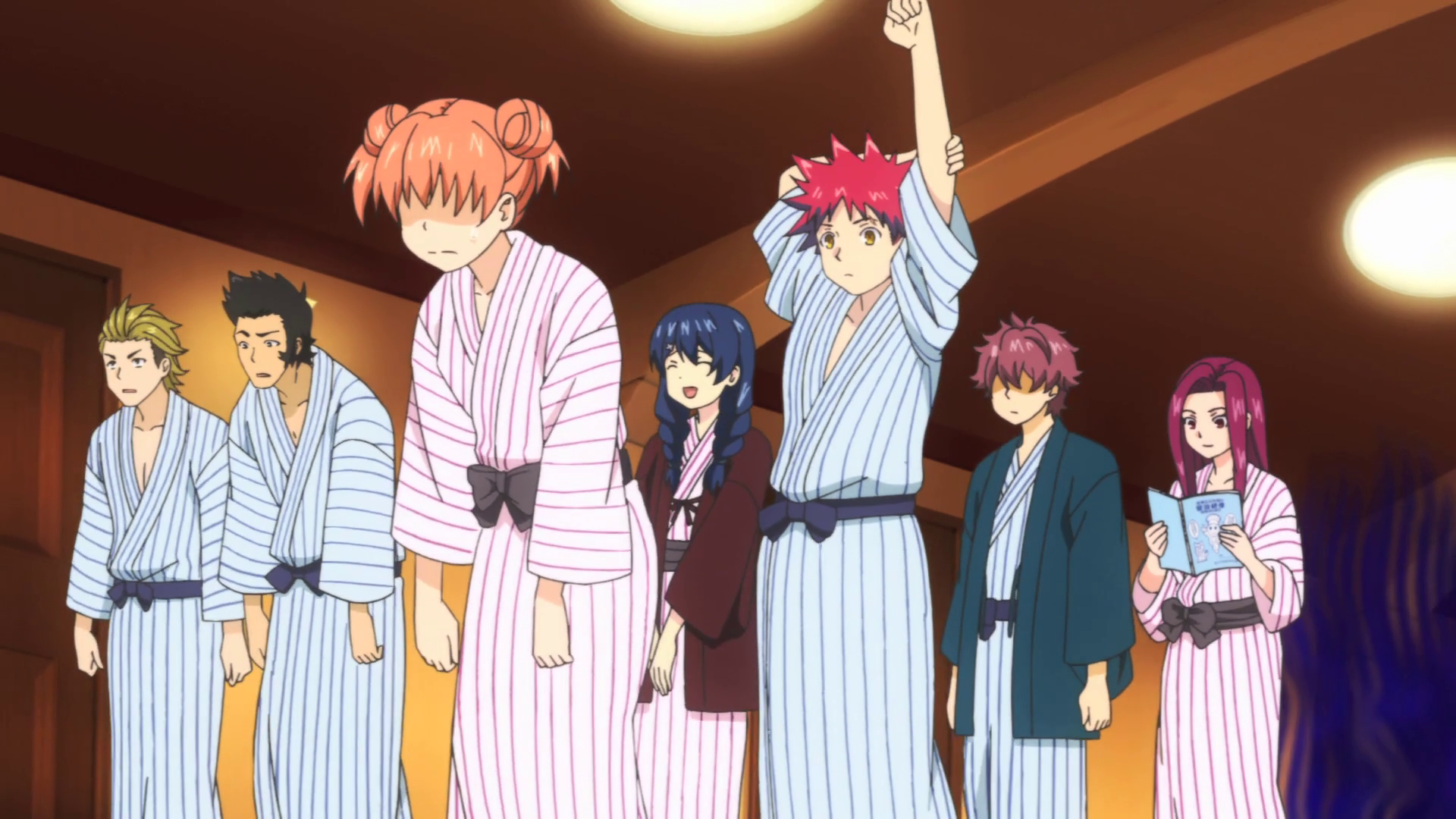 | Isami Aldini • Takumi Aldini • Daigo Aoki • Hisako Arato • Ken Dakekanba • Madoka Enomoto • Akira Hayama • Miyoko Hōjō • Shun Ibusaki • Takumi Ishiwatari • Urara Kawashima • Ryō Kurokiba • Zenji Marui • Subaru Mimasaka • Ikumi Mito • Alice Nakiri • Erina Nakiri • Nao Sadatsuka • Ryōko Sakaki • Yua Sasaki • Shōji Satō • Megumi Tadokoro • Yūki Yoshino • Sōma Yukihira |