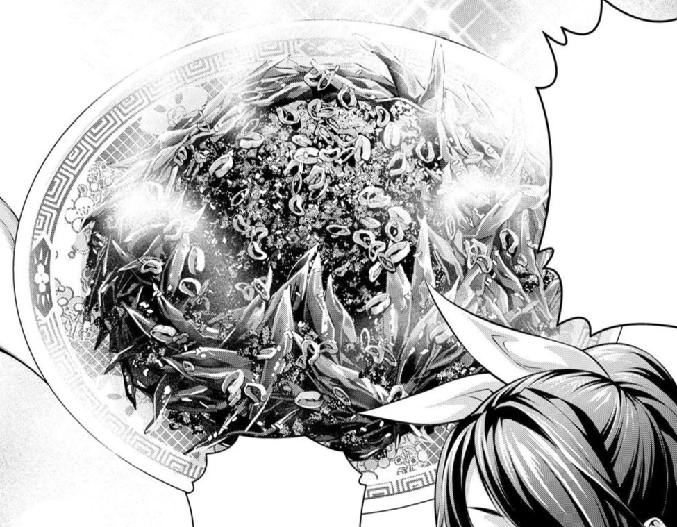 As Soma finished his dish, Cheese-Feathered Hanetsuki Gyōza, Rindō tasted it and complimented its deliciousness, and as the judging continued, Rindō continued to eat the dish.[18]