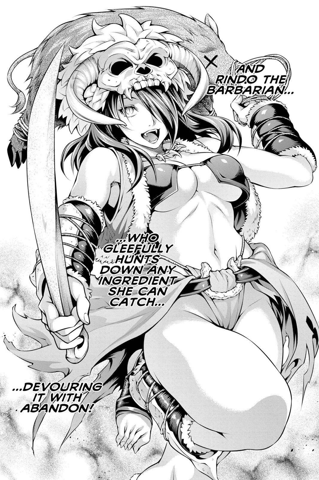 - Exotic Ingredients - Rindō is a specialist at handling exotic ingredients. Though she had great knowledge of the unusual ingredients Japan has to offer, she used her power as an Elite Ten Council member to travel the globe from the Arctic to the Amazon in her quest to find and use the most unusual ingredients for her cooking. One such ingredient was used in her very first duel shown in the series where she used a live alligator for the foundation for her dish.