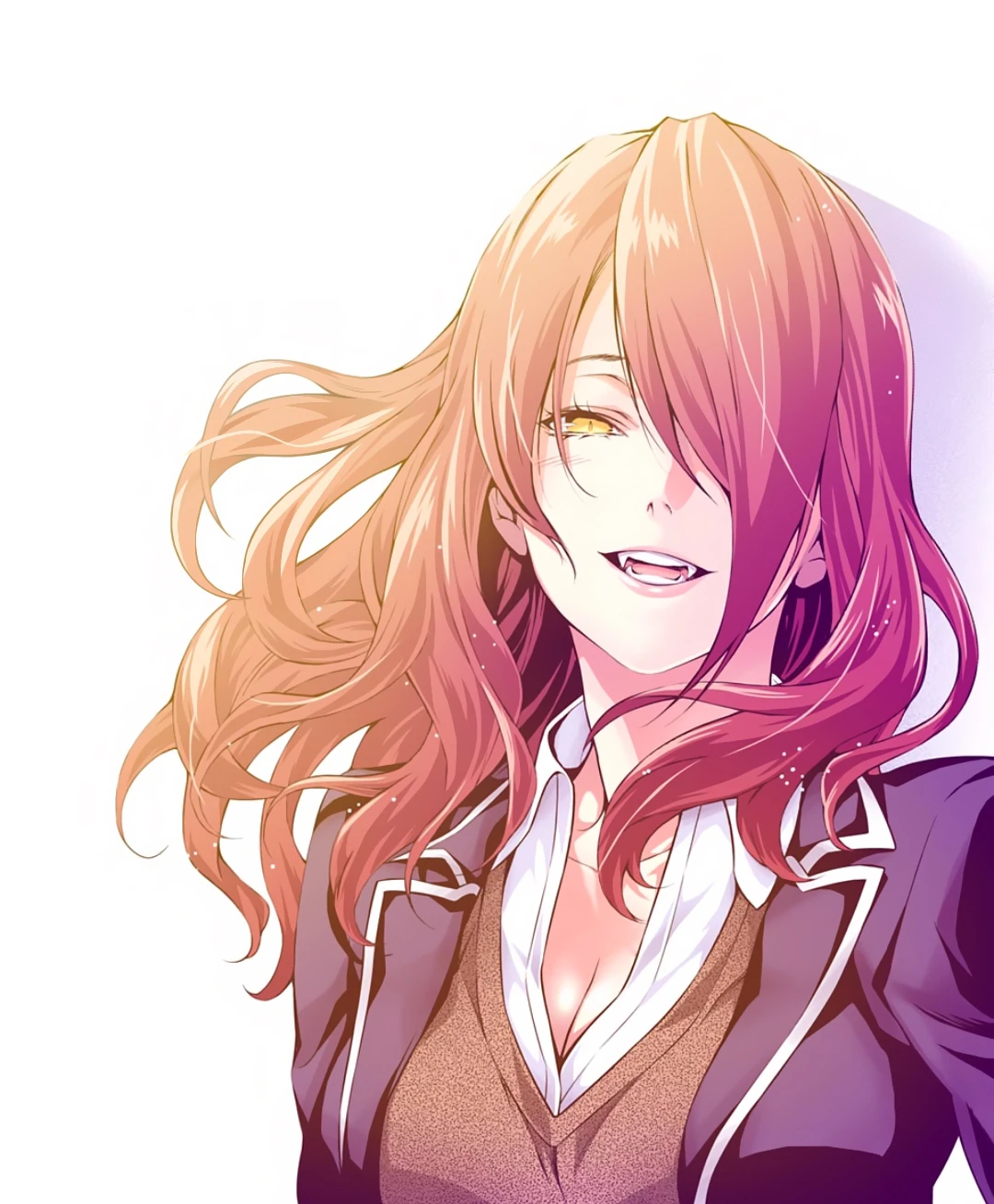 Rindō is an attractive teenage girl with flowing waist-length scarlet-red hair (her hair was much shorter in her second year) that has long bangs covering the left side of her face (giving her an alluring appearance) with medium-length hair strands reaching down to her shoulder blades, she possesses a lot of feline features like having yellow eyes with vertically slitted pupils and pronounced cat-like teeth, she is the tallest female Elite Ten Council member and she possesses a very large bosom with a proportionate buttocks as evident when the female cast see her in a towel, they all can't help but stare at her chest in awe except for Megumi Tadokoro and Yūki Yoshino who were particularly intimidated.