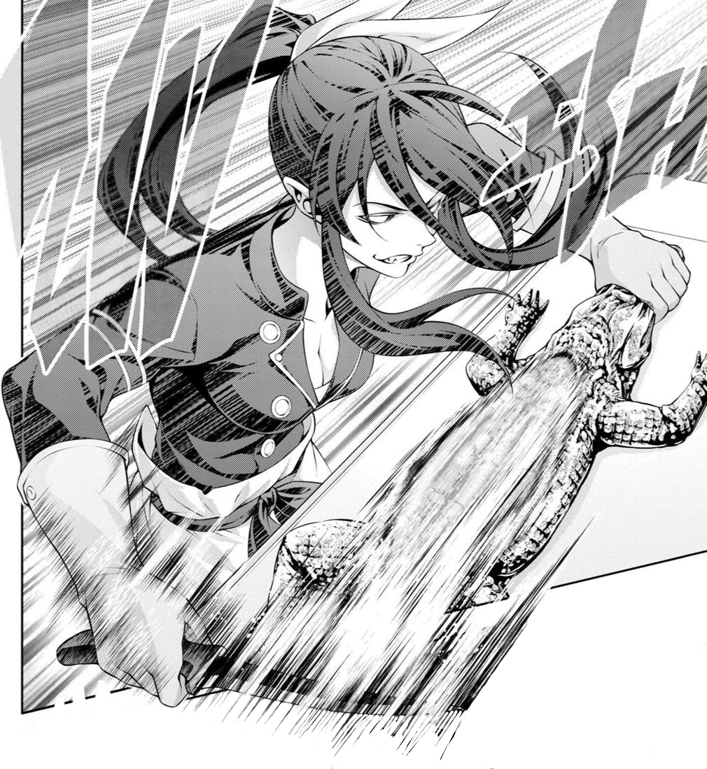 - Knife Specialist - Rindō has shown extreme dexterity and precision using a wide plethora of knives within a short period of time. In mere moments, she completely skinned and bled out her alligator, leaving most of the rebelling students stunned. Even Eishi acknowledged her skill with knives.