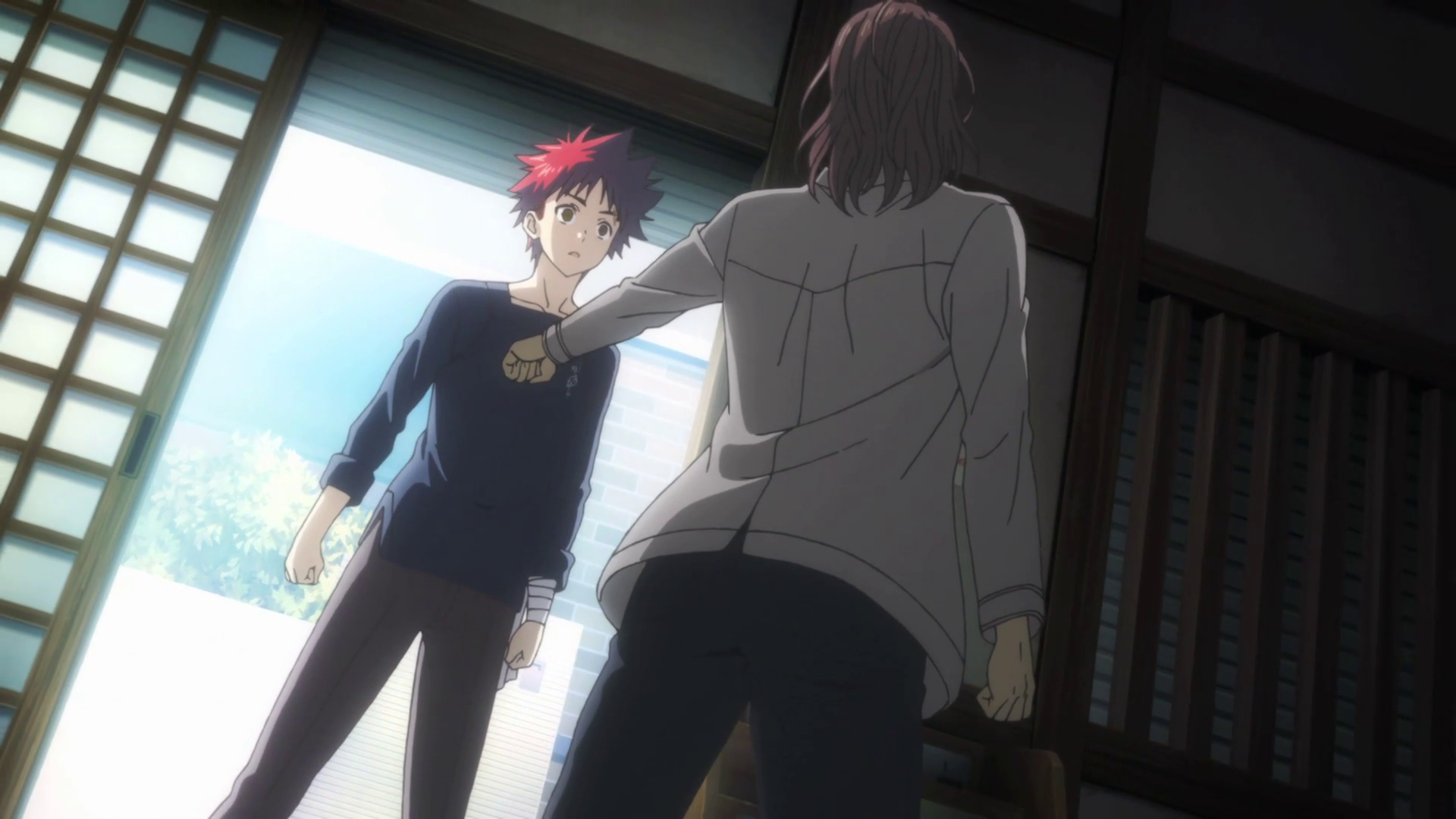 Jōichirō claps Sōma's hands to calm him down