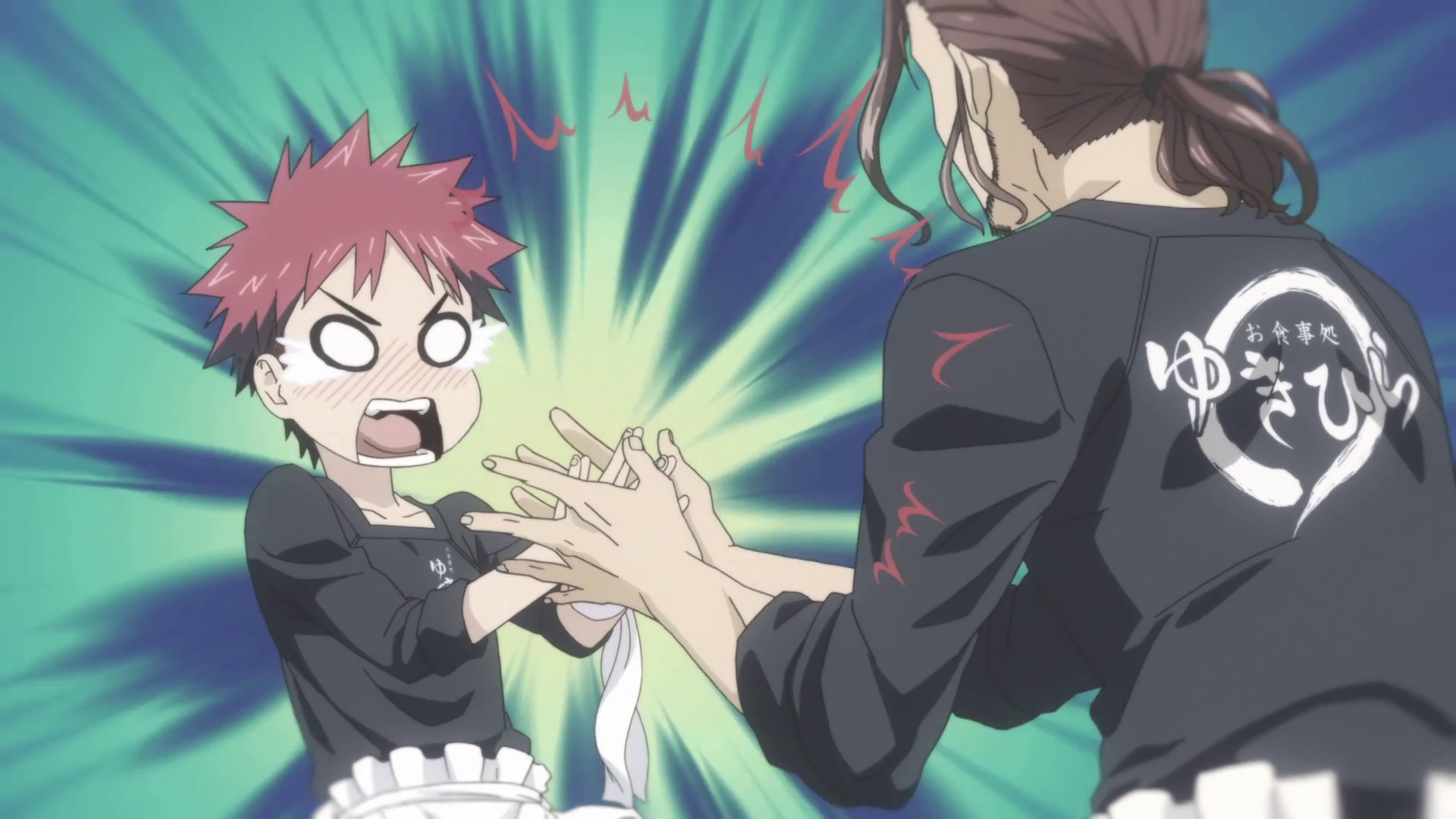 Sōma realizes Takumi's professional experience when grabbed by him.