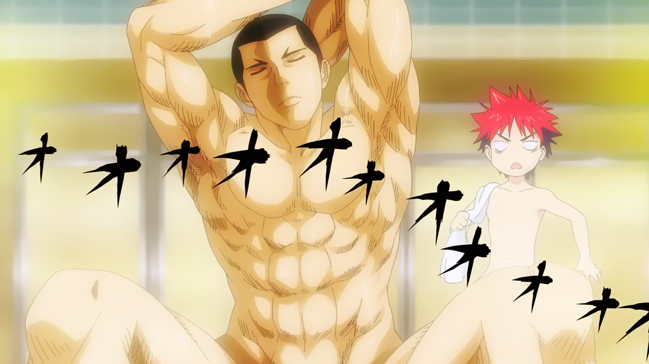As Hisako Arato, Erina's Secretary arrived after completing her task, Erina told Sōma to leave her presence. Sōma obliged and headed into the bath where another person was already bathing: Gin Dōjima. Gin was impressed that Sōma had managed to finish before he finished his bath, saying that last year only Satoshi had accomplished the same feat. Sōma and Gin chatted for a while, discussing about Erina who Gin felt will become the greatest masterpiece ever created in Tōtsuki. Still, Gin wished Sōma good luck on his journey at Tōtsuki. Gin shook his hand as he left the bath just as Takumi had arrived. After his bath, Sōma met up with the rest of the Polar Star in Zenji's room. Though most of them collapsed from fatigue, Sōma, Ryōko, Megumi, and Shun remained conscious. Megumi expressed doubts in her abilities, but Sōma told her that she really helped him out today and that he only succeeded thanks to her help.