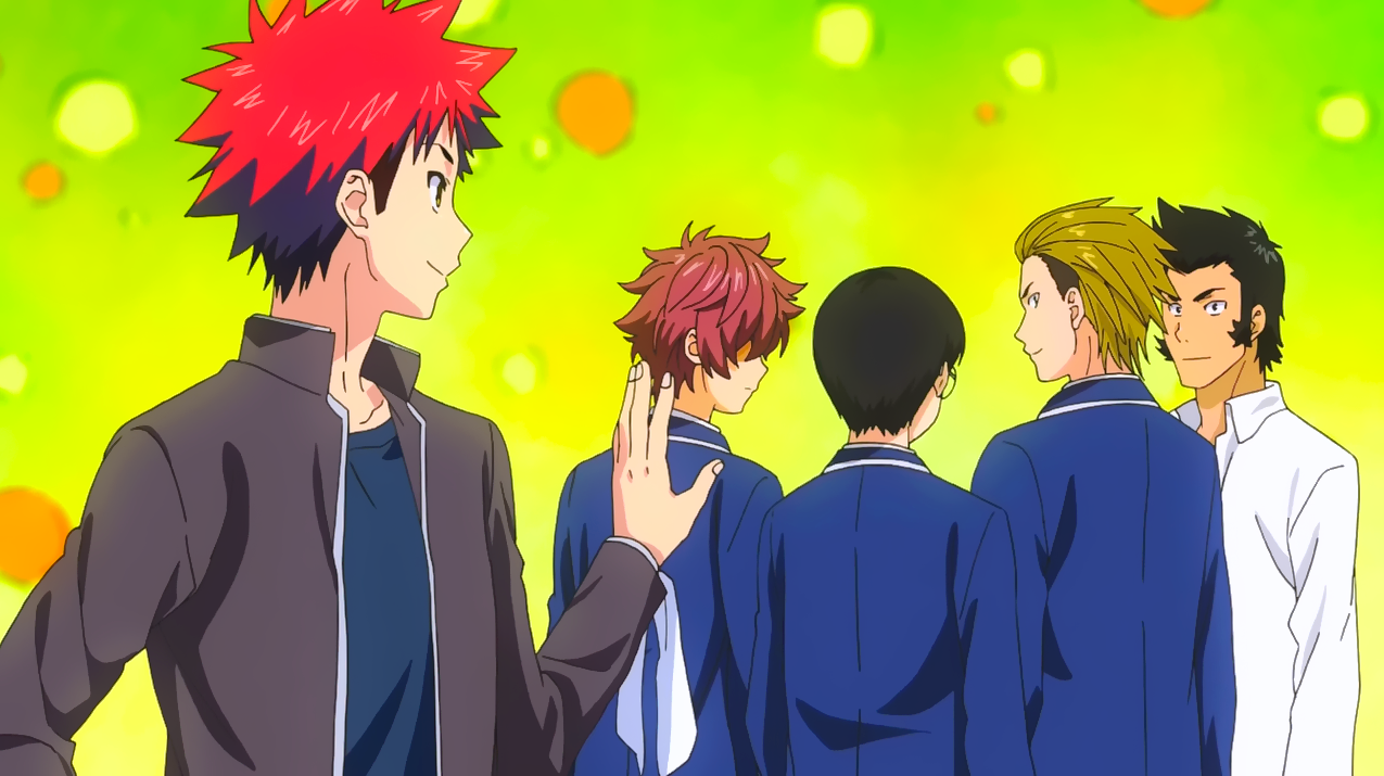 | Isami Aldini • Takumi Aldini • Daigo Aoki • Hisako Arato • Ken Dakekanba • Madoka Enomoto • Akira Hayama • Miyoko Hōjō • Shun Ibusaki • Takumi Ishiwatari • Urara Kawashima • Ryō Kurokiba • Zenji Marui • Subaru Mimasaka • Ikumi Mito • Alice Nakiri • Erina Nakiri • Nao Sadatsuka • Ryōko Sakaki • Yua Sasaki • Shōji Satō • Megumi Tadokoro • Yūki Yoshino • Sōma Yukihira |