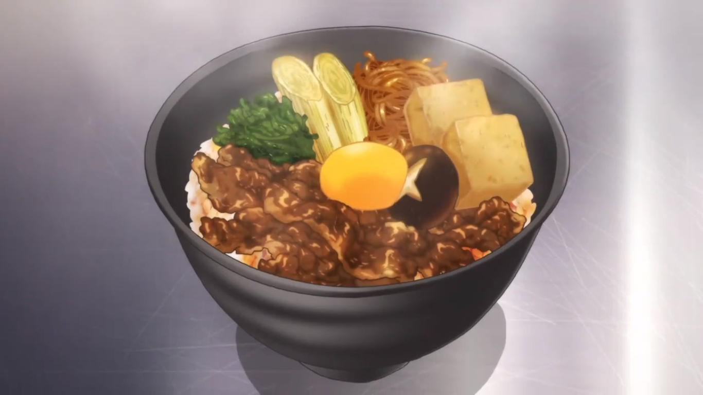 Sukiyaki Don is a dish made by Sōma Yukihira. It was a practice dish for his Shokugeki against Ikumi Mito.